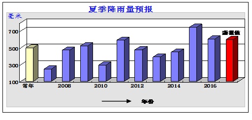 預計全市夏季總降水量為500-700毫米,較常年偏多,雨日38-42天,較常年略多。其中6月為220-300毫米,較常年偏多;7月為140-220毫米,較常年偏多;8140-180毫米,接近于常年。